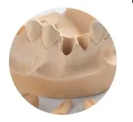 Yeso natural reforzado con resinas sintéticas con elevada para evitar su astillado durante el fresado.